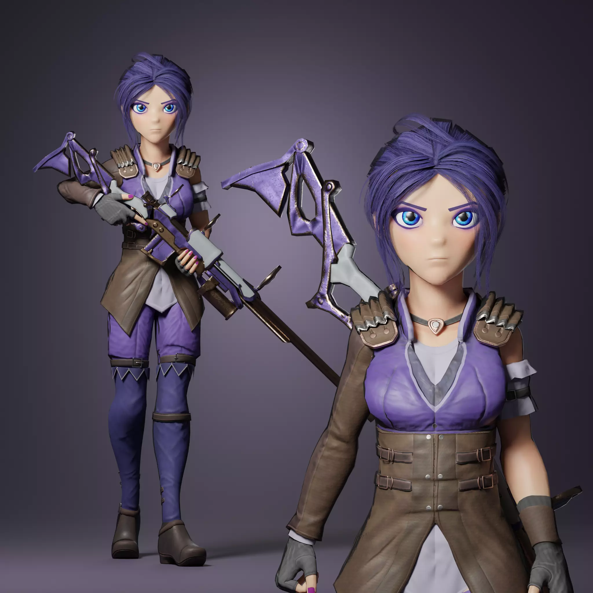 3D character fanart of Caitlyn From arcane Created Using Blender and Substance Painter.Flies included: Blend, FBX, Obj, textures7 texture setsHead(2k)Body (2k)Eye (1k)Hairs (1k)Clothes Top (2k)Clothes Bottom (2k)Rifle (1k)