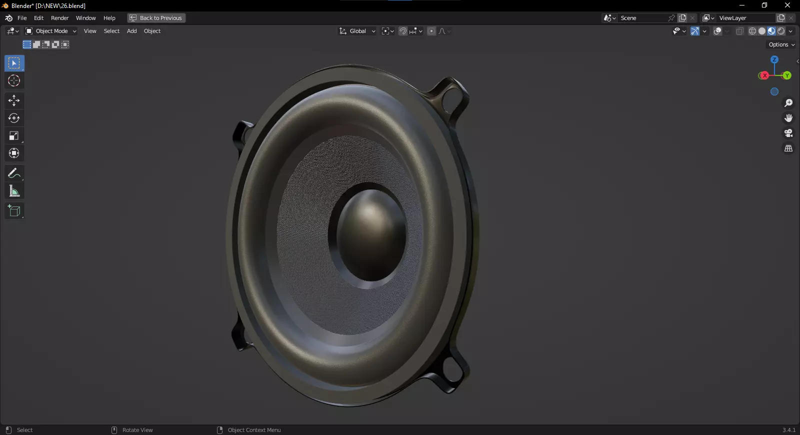 The model has material settings that define how surfaces look (color, shine, transparency, etc.).