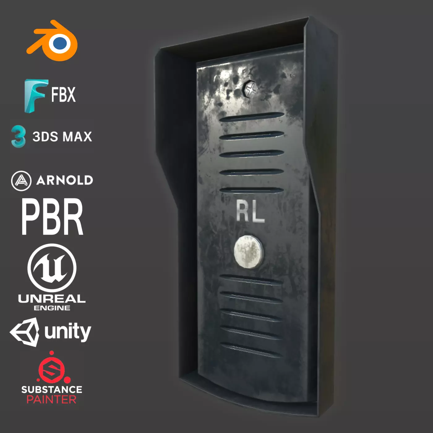 Game ready PBR asset. This small intercom unit can be placed inside an office buidling or outside a residential building. It's made from black plastic, relatively new condition, although i have introduced some wearing effects in the textures.