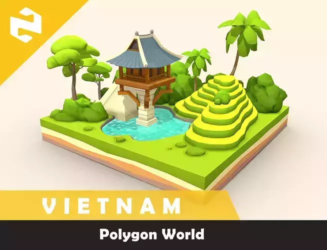 This particular release features a Vietnam-themed asset pack, highlighting iconic visuals such as the One Pillar Pagoda, rice fields, lush forests, and other culturally significant elements — all reimagined in a charming, cartoon-style aesthetic that fits perfectly into the Polygon universe..