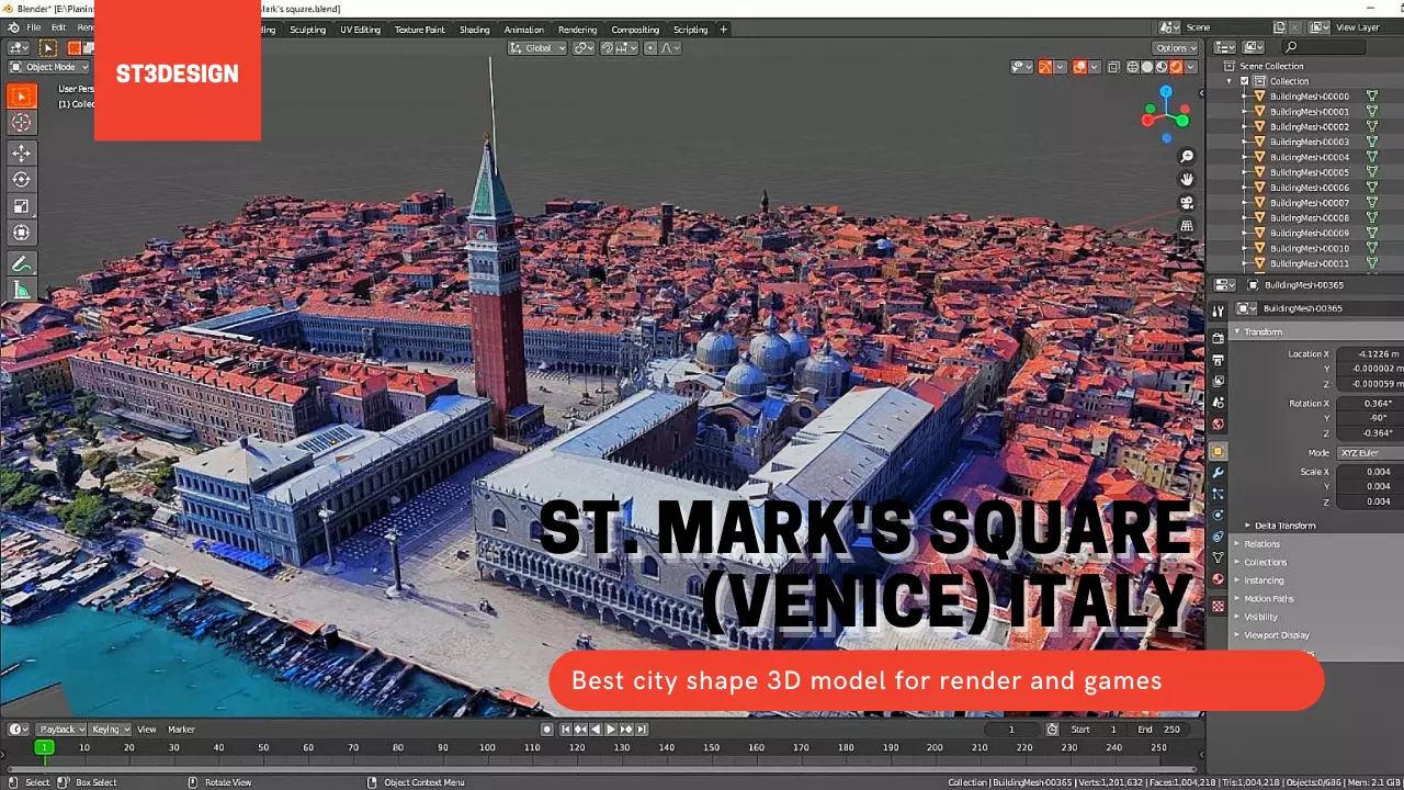 In the file that you have downloaded you can find a 3d model of St. Mark's square, Venice ,ITALY, that you can use for your games, renders, movies and everything in CGI, with different materials that you can use to modify your renders. Detailed clean, topology Exterior Detailed, I'm apologise because the mash are not clearn, if you have some problem with that please contact me. In the file that you have download you can also find the texture that you can aply on the model for your render.