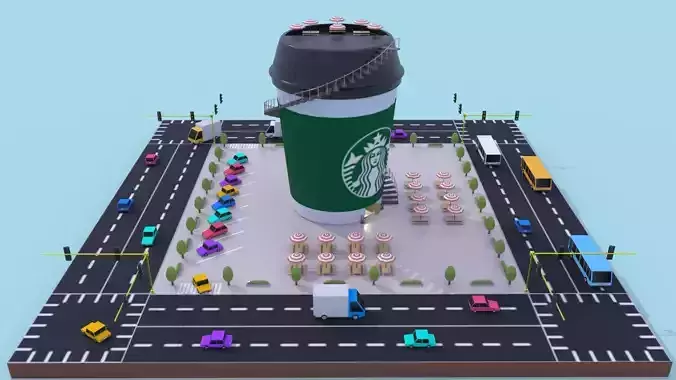 Lowpoly Stylized Environment Starbuck Cup Cafe Free low-poly 3D model