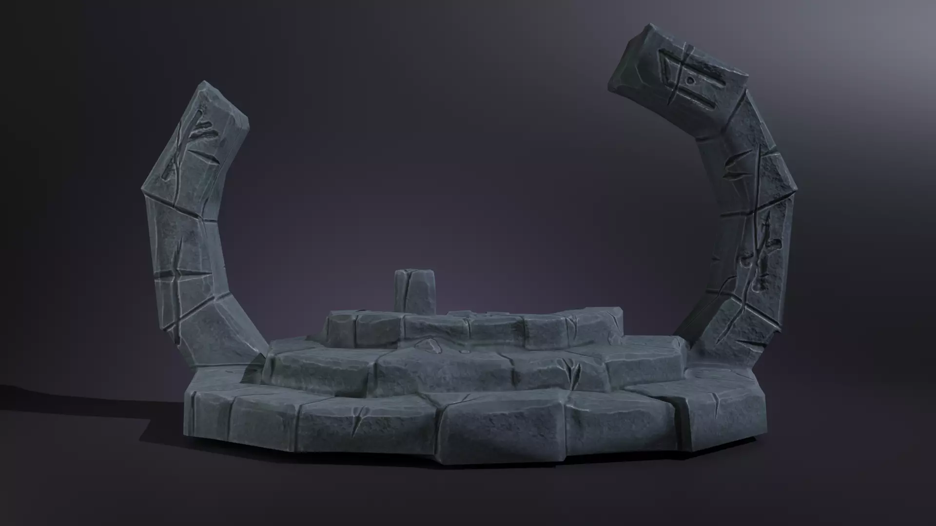 Stylized ruin in the form of a destroyed portal! The model has PBR textures, including Diffuse (2k), Roughness (2k), and Normal (2k) maps. The model has been completely retopologized from a sculpture and comes with ready-baked textures. So the model is low poly (1052 vertices).