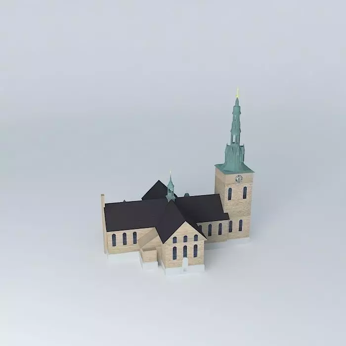 This 3D model was originally created with Sketchup 7 and then converted to all other 3D formats. Native format is .skp 3dsmax scene is 3ds Max 2016 version, rendered with Vray 3.00 This model is made of L3D, adapted by FROLICH. The present cathedral, Our Saviour's Church, was erected in the 1690s on a small rocky outcrop between the then Great and Little Violence Port, in the east end of what would later become the Main Market. The foundation stone was laid in 1694 and the church was consecrated 7. November 1697 by Bishop Hans Rosing. The plan has Latin cross form. Stone from the demolished Holy Trefoldigheds church and probably Hallvard cathedral was reused, but the church was easier done than these two, including without vaults. But it was acquired magnificent altarpiece, pulpit and other inventory baroque, begun by an unknown Dutch artist, but ended by Norwegian woodcarvers in akantusstil. The tower was lower than today and was revealed with a gentle tower helmet. The church was bricked in Dutch yellow bricks that came to the country as ballast on the Norwegian timber ships and was therefore far cheaper to use than the Norwegian, red brick. Tower received an English clock in 1718. The church is undergoing a new restoration in 2006/2008 after it is revealed extensive moisture damage especially in the roof.