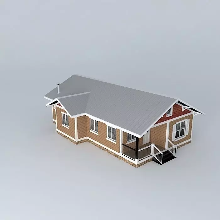 This 3D model was originally created with Sketchup 8 and then converted to all other 3D formats. Native format is .skp 3dsmax scene is 3ds Max 2016 version, rendered with Vray 3.00 Here is a modern craftsman-style house for a small southern California community! Take a full tour of it both inside and out. The layers menu is available so you can view or furnish this house with ease. The roof is metal and you will see brackets and shingles in the gables. The windows are mostly sliders however the front window is double hung. You get an open floorplan in front with your private quarters behind. Even though this house is new, like the old kit homes, it has 2 bedrooms and 1 bathroom. The kitchen is complete with a refrigerator, double sink, dishwasher, gas range w/ oven, a pantry, and plenty of cabinets. The house sits on a crawl space foundation. There is a shed and mechanical hook-ups in the back of the house. Enjoy it. Rate it please. For more houses and architecture, you can find it on my Facebook page found by the link below :)