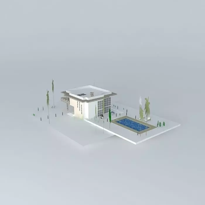 This 3D model was originally created with Sketchup 8 and then converted to all other 3D formats. Native format is .skp 3dsmax scene is 3ds Max 2016 version, rendered with Vray 3.00 house with swimming pool in the garden