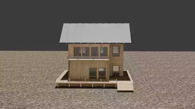 Realistic wood textures for the façade and deck.UV-mapped materials with clean topology.High-resolution textures for close-up renders.Geometry and Wireframe: