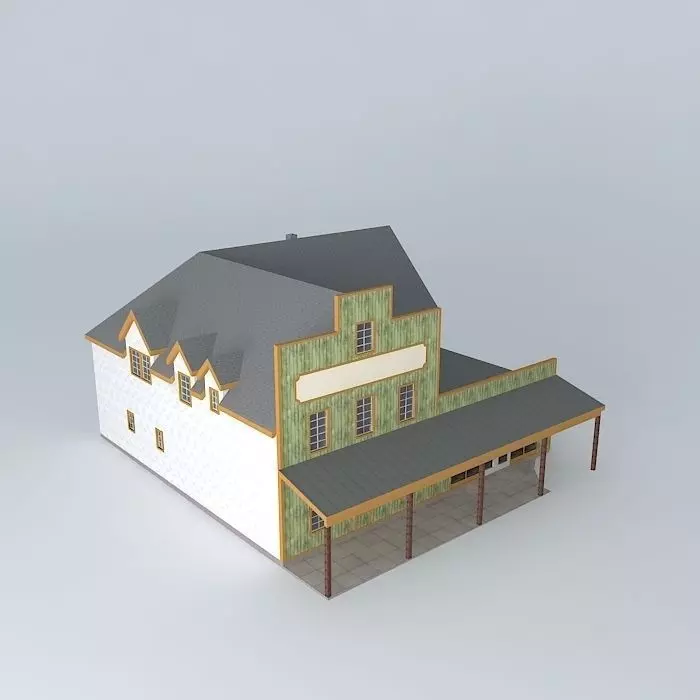 This 3D model was originally created with Sketchup 8 and then converted to all other 3D formats. Native format is .skp 3dsmax scene is 3ds Max 2016 version, rendered with Vray 3.00 This model is based on a store in New England that I drove by several times while driving truck. It originally was an Ell-shaped farmhouse that was commercialized by squareing the ground floor and making the shop keeper's quarters upstairs. Ground floor remodeled into retail space. Empty store, all ready for the next tennant. Unfortunately, the last ones took the appliances, darn them! So you would have to provide them. TY to the contributors. The false front is my idea. The signboard is ready for the next tenants. But the original shape remains.