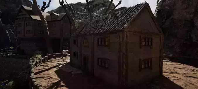 • Cliffside Charm: Built dramatically on an elevated stone platform, this house appears to defy gravity, adding dynamic storytelling potential to your scenes.