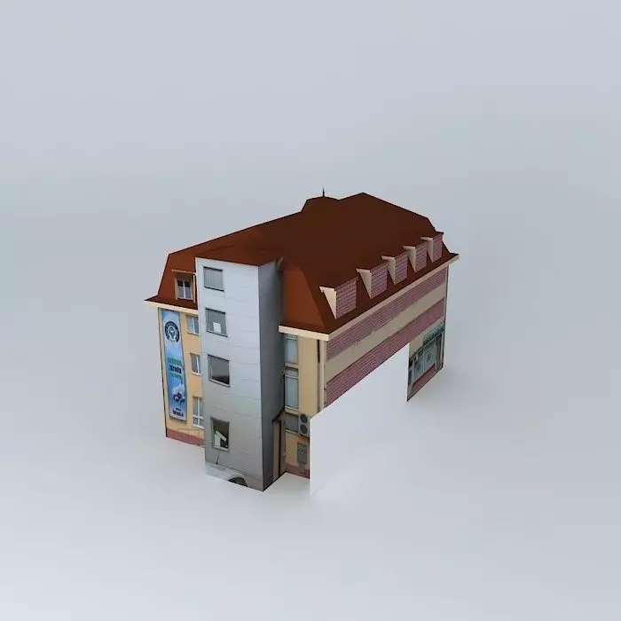This 3D model was originally created with Sketchup 8 and then converted to all other 3D formats. Native format is .skp 3dsmax scene is 3ds Max 2016 version, rendered with Vray 3.00 Built in the sixties as a three-storey building, from the beginning it worked as a book shop on the ground floor, offices on the second floor photographer, the district headquarters kiipari company's board of directors. After the political renovated felvonóval.A model of the building was built long laposteteju attic that contains the változatott. The District Court against the corner of the building stands, following its formal architecture.