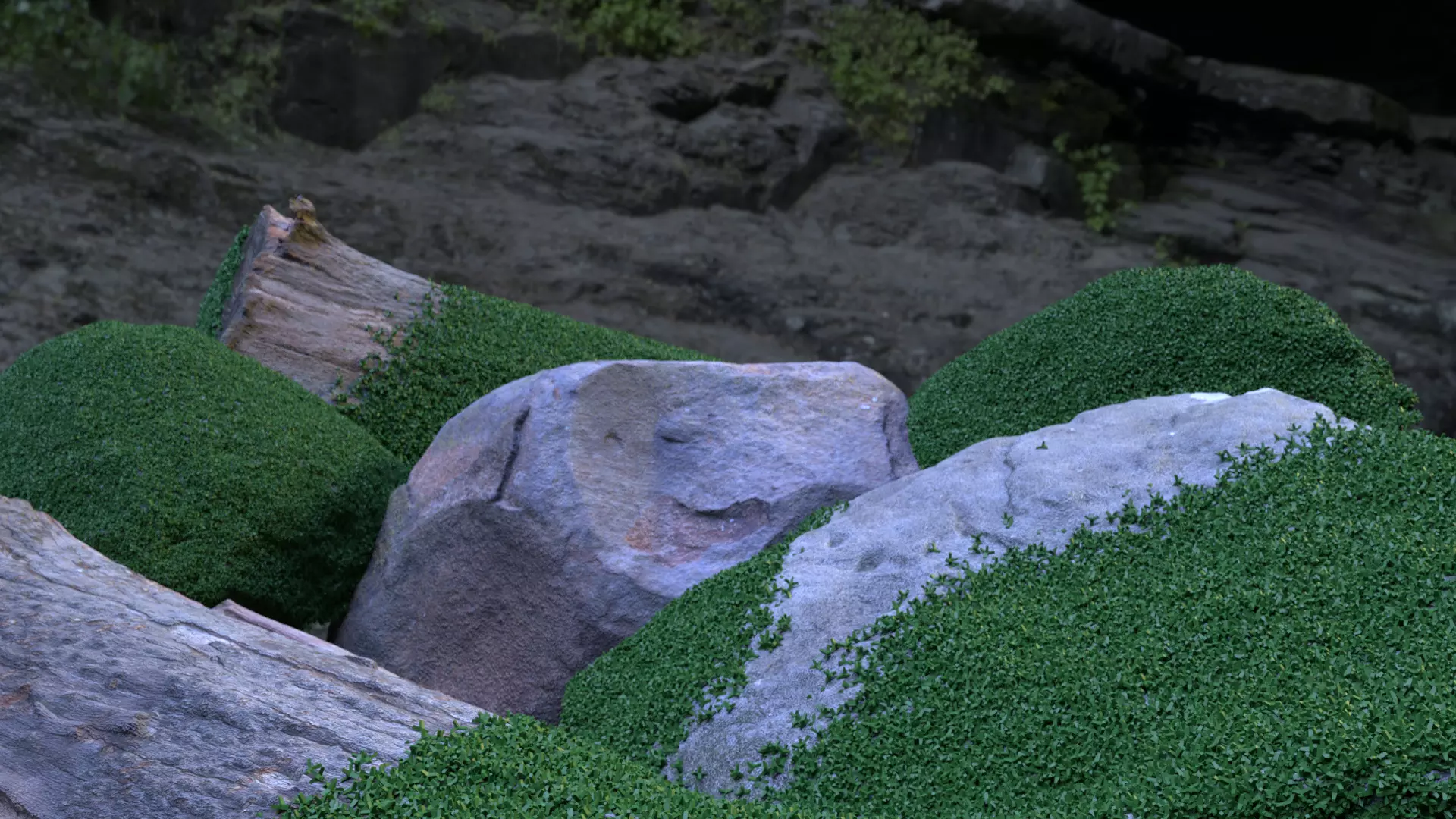 This pack contains three seperate rock models and a log model. Each of these were 3D scanned from hand using a program called Meshroom by taking 30-40 pictures around the object in real life. The textures on the rocks are VERY high definition and the each of the models is so detailed it is almost like real life. Each of the models, (as you can no doubt see) has around about 700,000 faces each and would be perfect for any movie/game projects that you have. Three of the four rock models have moss and the others have no moss. The file size is quite large so I wouldn't recommend using this if you have a computer that is older than about 8-9 years. I made this on my pc which is pretty garbage and it was fine so you should be fine too. The native file is the Main Rocks Scene.blend so I would recommend using that file if you can. You will also get a zip file that If you have any questions, problems or you want to hire me to do something similar to this then please don't hesitate to ask me and I will try to get back to you as soon as possible. :)