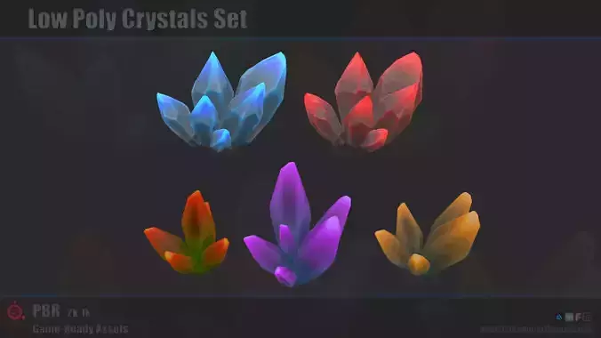 Game-ready Low Poly Crystal Set avalible in 2k, 1k and (2k for blue and red one) Textures map resolution