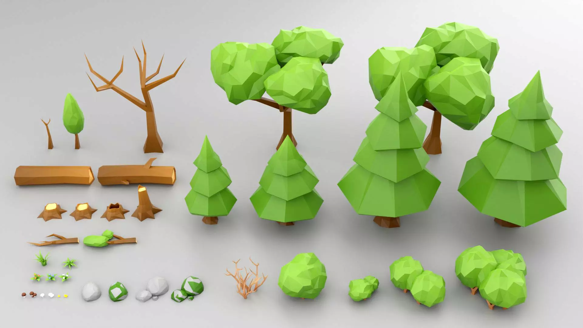 Includes 37 objects (from the paid set) that are suitable for building a forest scene on a game engine or just for low poly rendering.