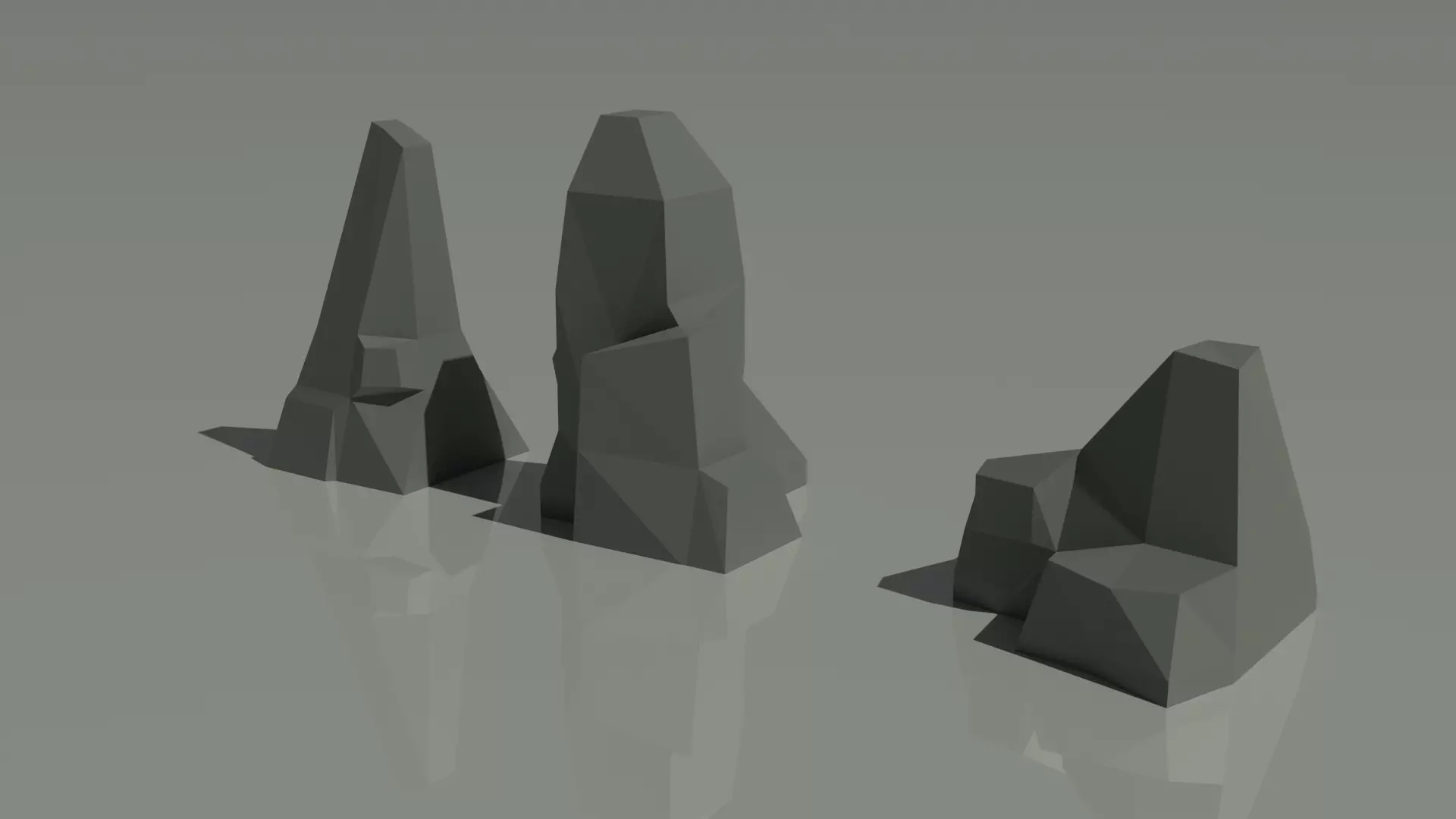 This model is a collection of low poly rocks that would be useful in video game development, stylistic animations, 3d rendered art, or anything else you could think of. This model will take up minimal space with all 3 rocks having a combined polygon count of only 139 polys.