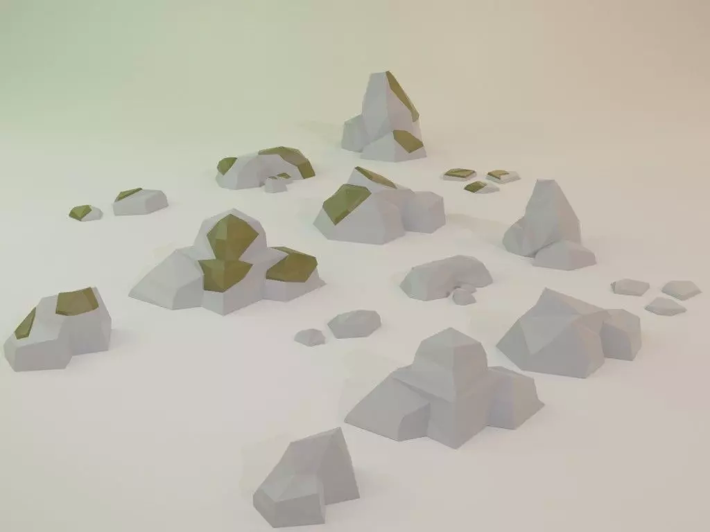 A set of low poly stones of various shapes for decorating the landscape. Complement the forest, city park, the surrounding countryside or your own fantastic world. The set consists of 14 stones: 7 ordinary and 7 with moss. The texture atlas is in < texture.zip >.