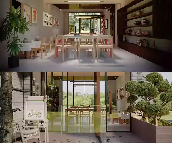 The model has material settings that define how surfaces look (color, shine, transparency, etc.).
