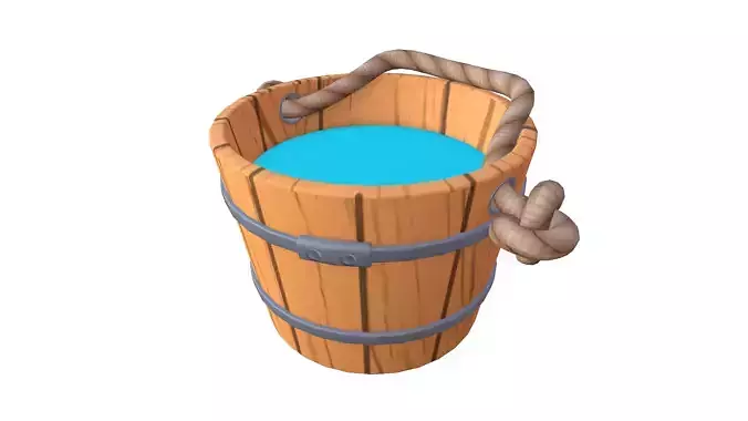 PBR game ready Cartoon Wooden Bucket. Texture resolution 2048x2048