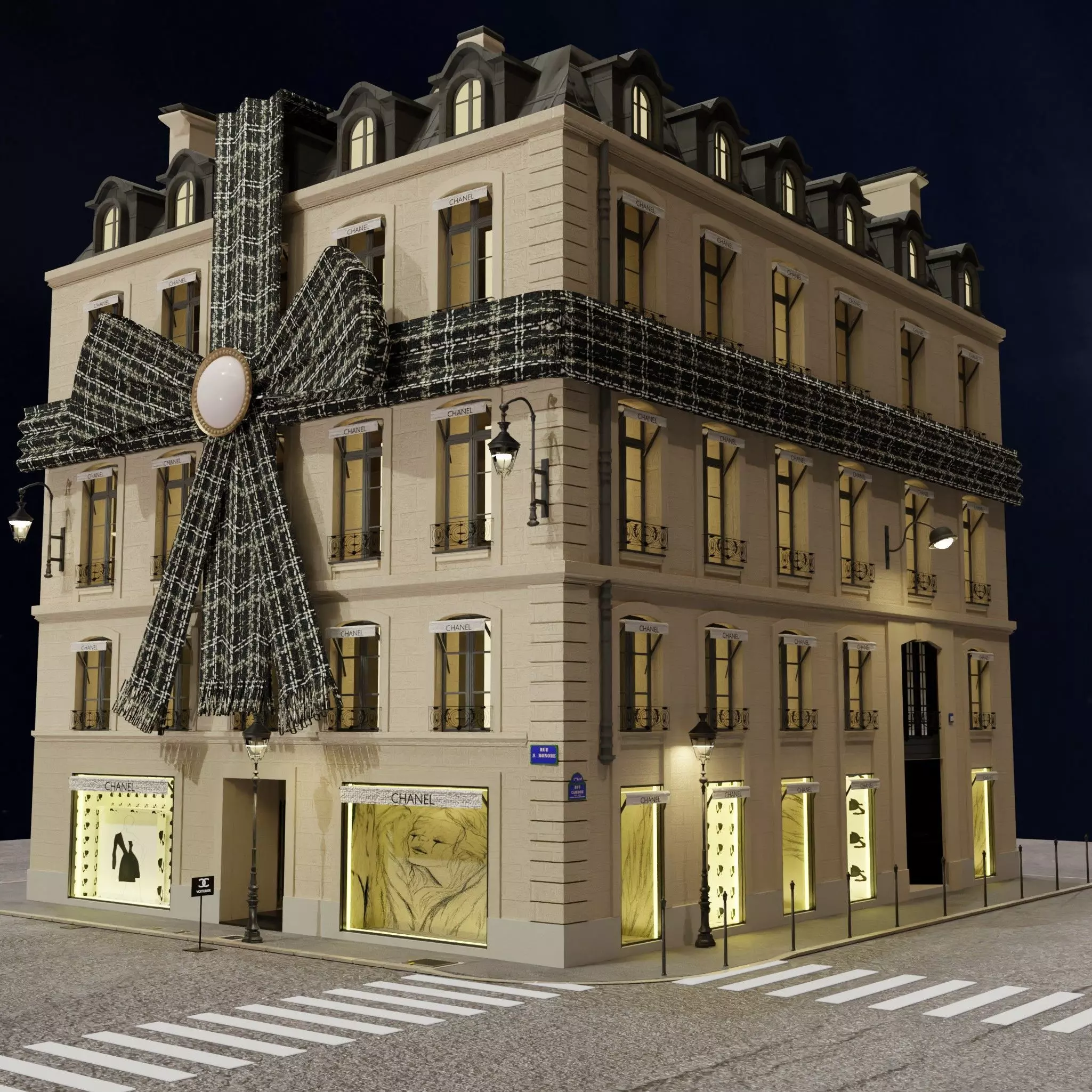 Realistic 3D CHANEL butik paris Street Scene