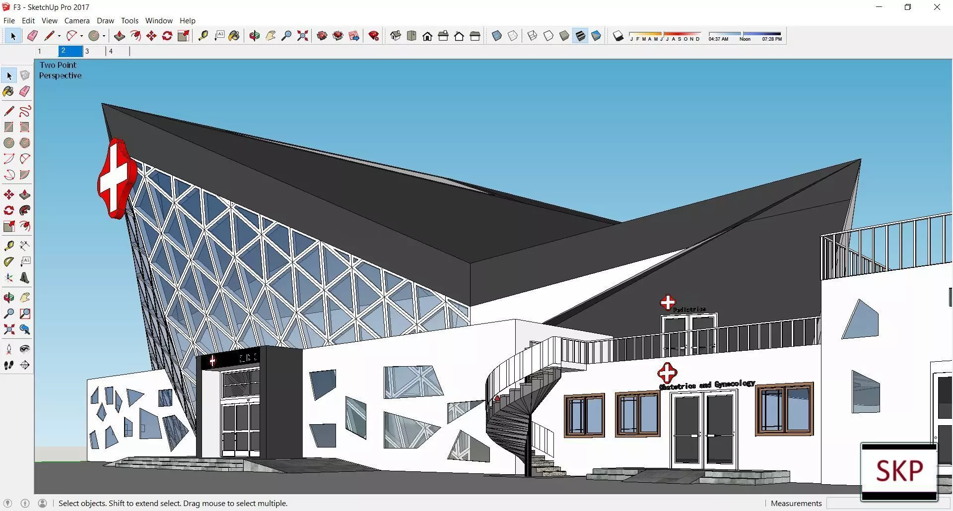 The model has material settings that define how surfaces look (color, shine, transparency, etc.).