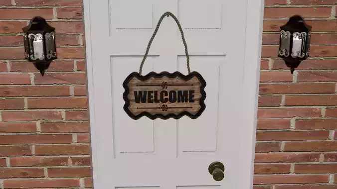 Wavy Edge Front Door Wooden Welcome Sign Free low-poly 3D model