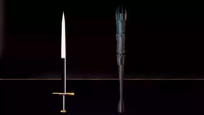 La textura y normales de el baston son extraidas de google para la espada solo colores lisos blanco y amarillo con el tono metalico al maximo y la rugosidad en 0 La cantidad de poligonos y vertices puede apreciarse en las imagenes de captura de pantalla de Blender.