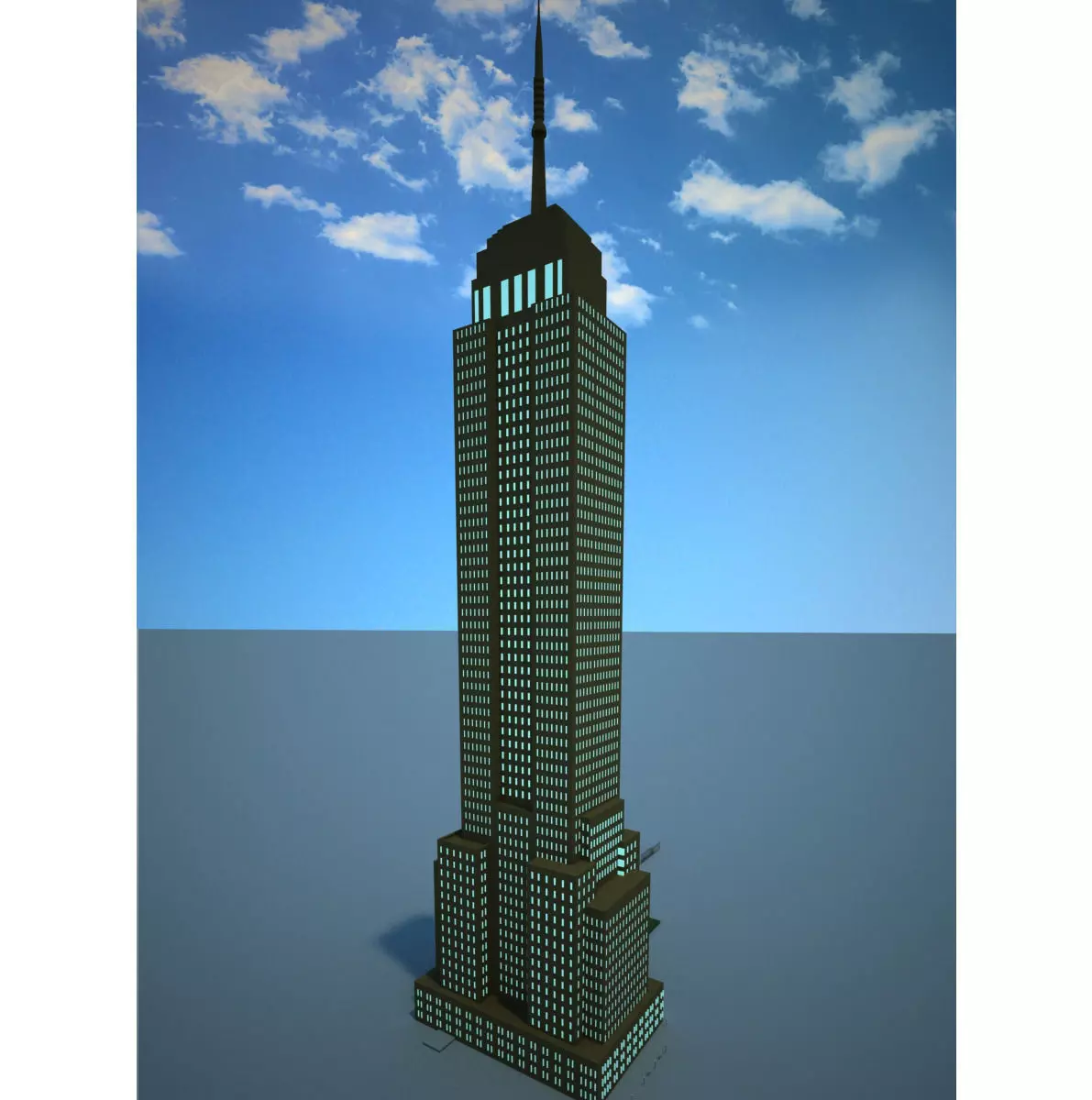 The model has material settings that define how surfaces look (color, shine, transparency, etc.).