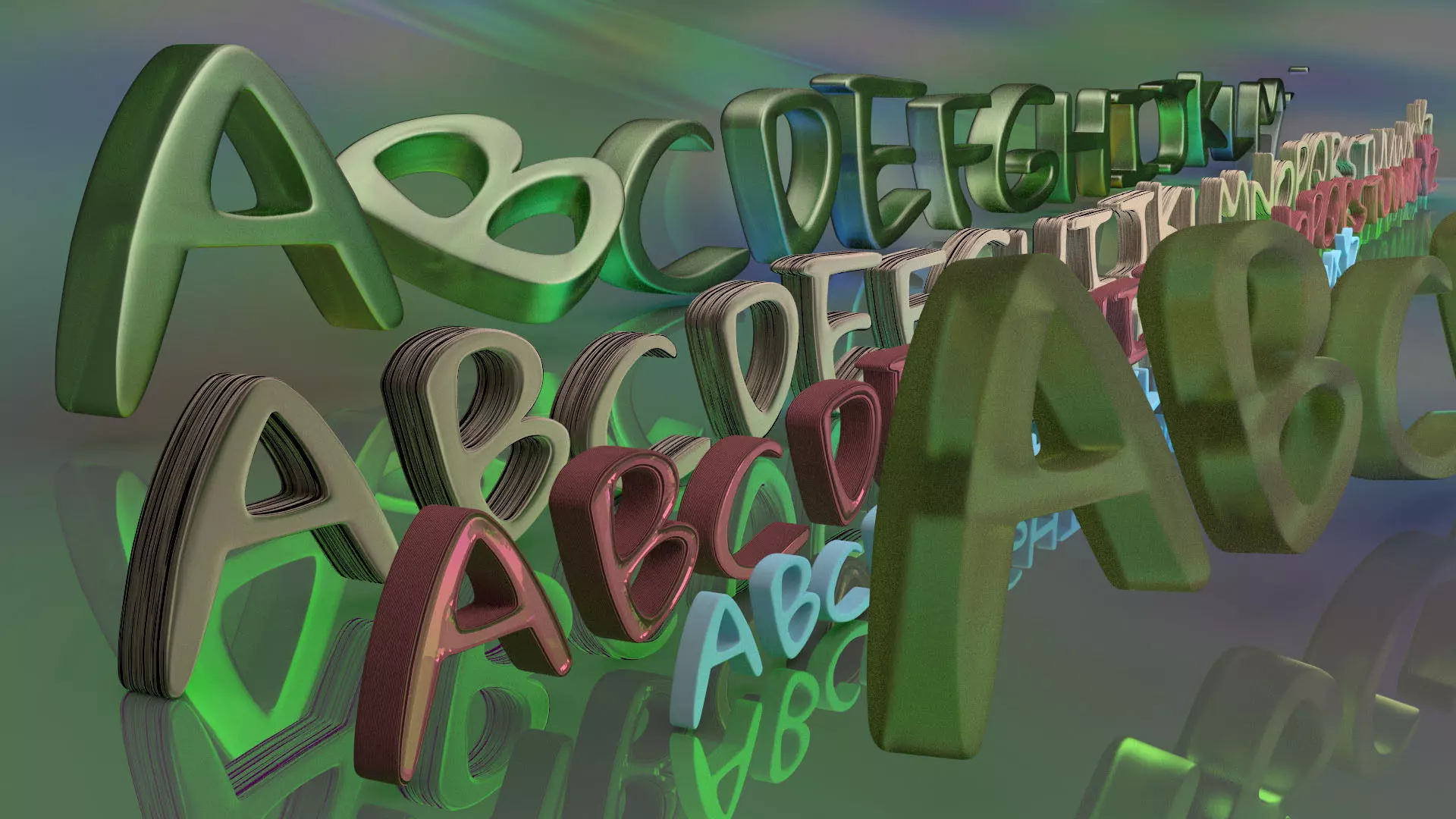 Gloria Font 3D, polygon mesh, ready to deform, break, melt, use as emmiter, as a shape ..modeled en rendered in Blender 2.77