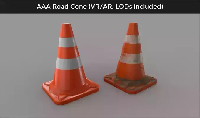 A low-poly road cone asset with great attention to detail and proper rendering.
