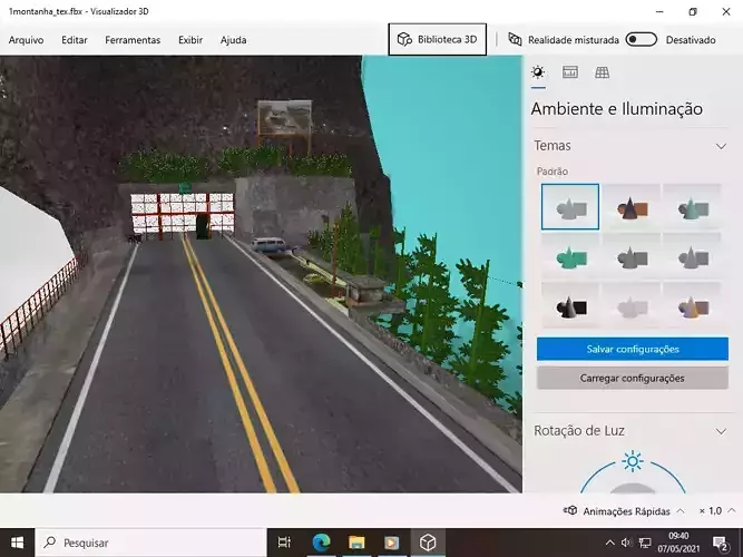 The model has material settings that define how surfaces look (color, shine, transparency, etc.).