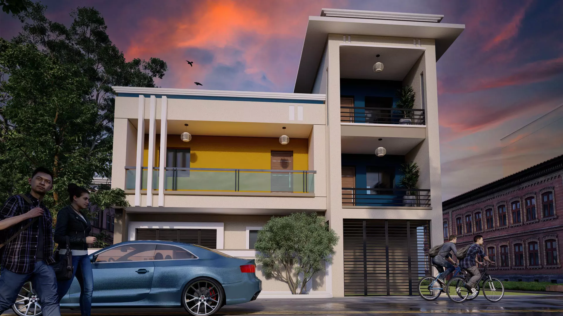 The model has material settings that define how surfaces look (color, shine, transparency, etc.).
