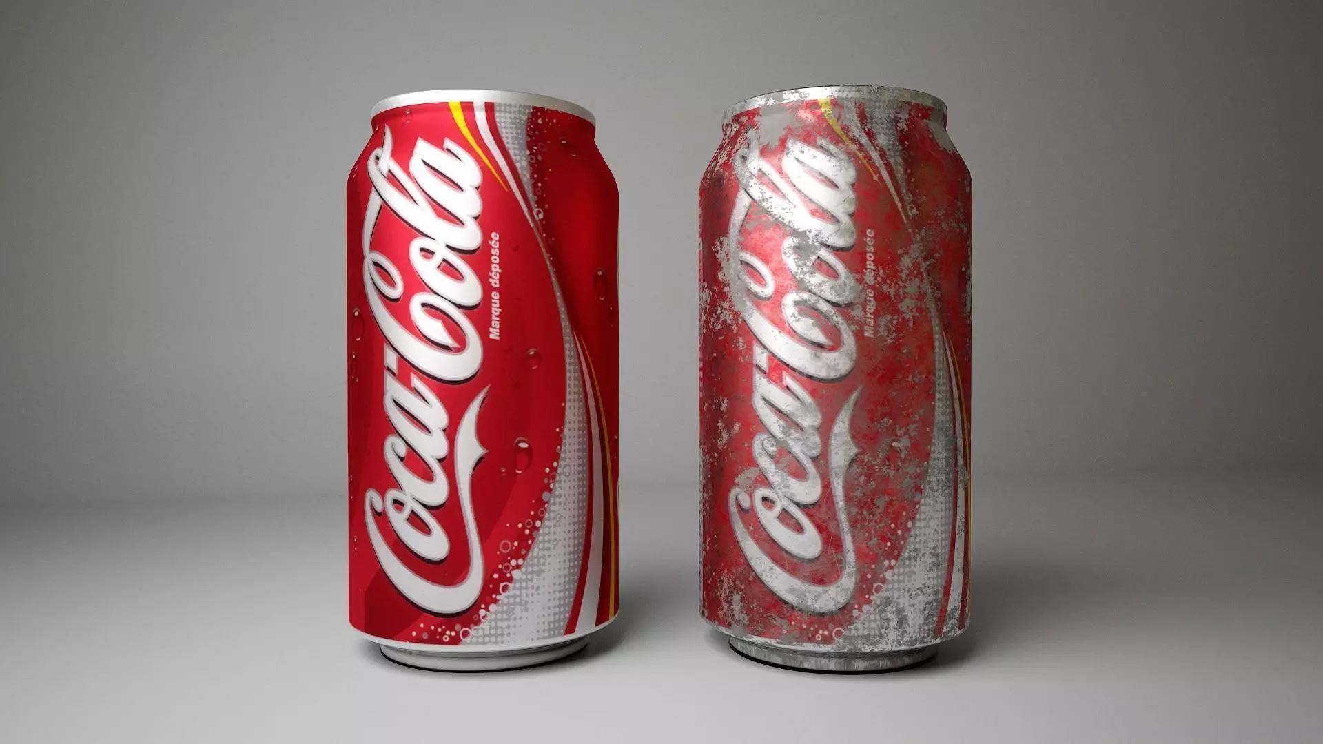 Coca Cola can, including damaged version of texture, fully PBR-ready.