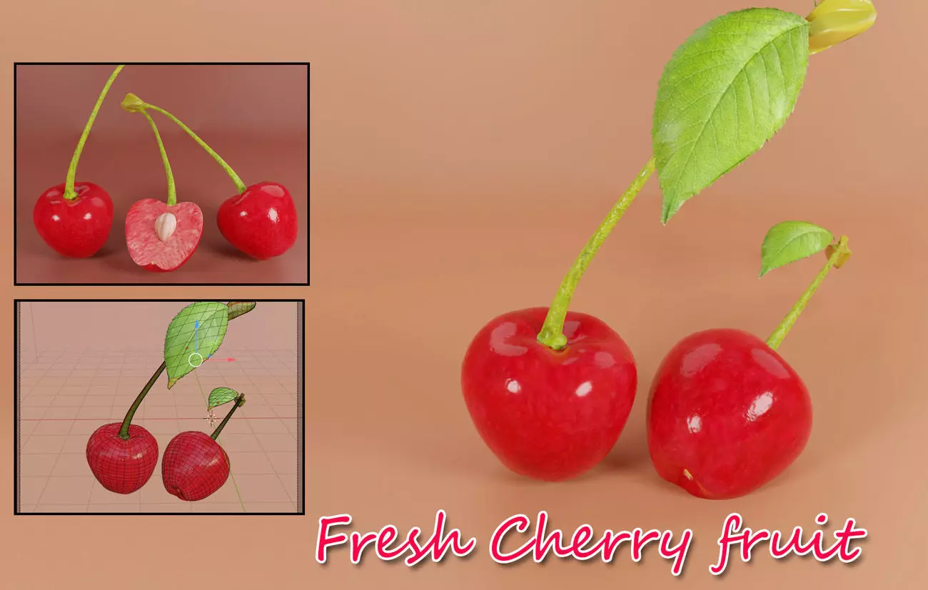Fresh Cherry Fruit 3DA cherry is the fruit of many plants of the genus Prunus, and is a fleshy drupe (stone fruit).