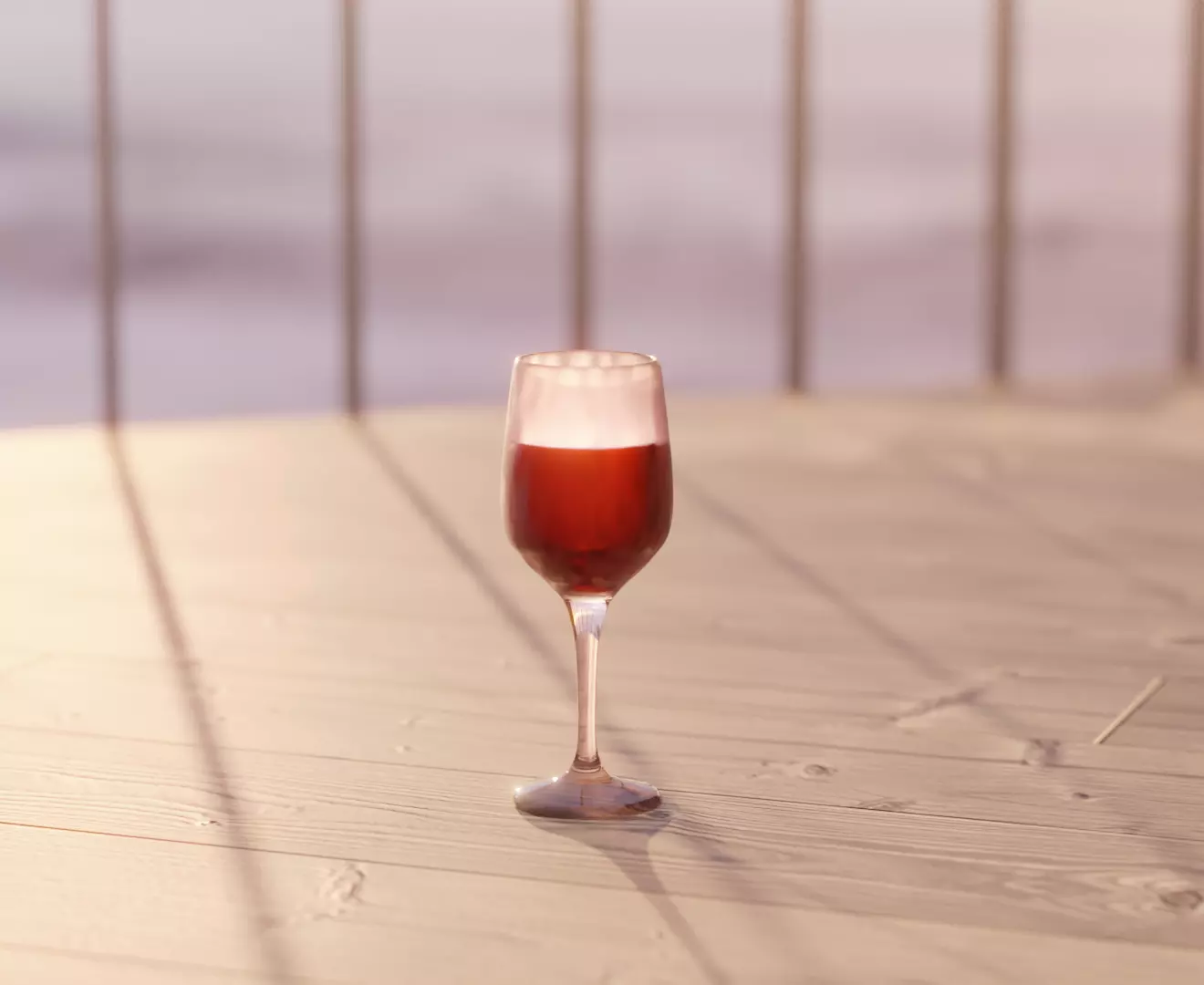 A high poly model of wine glass made with blender I have used only one textures for the floor and hdri for better lighting