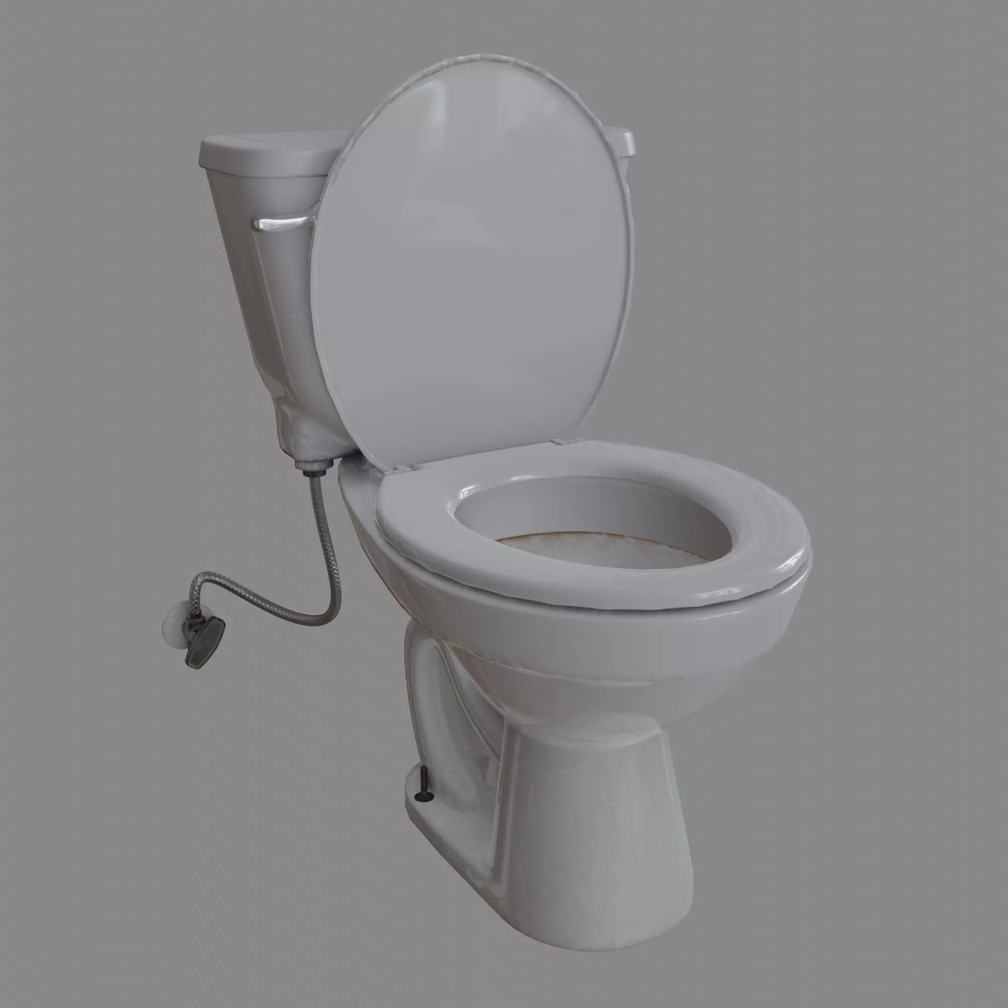 Toilet with water hook up. Toilet lid and seat are separate objects for simple manipulation.