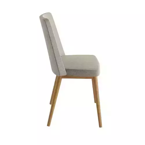This chair has a modern and minimalist design. The seat and back are upholstered in a soft light-colored fabric with a pleasant texture that adds coziness. The legs are made of light-colored natural wood, which gives the product a natural look and makes it stable. This chair is ideal for a kitchen, dining room or office in a Scandinavian or modern interior style.
