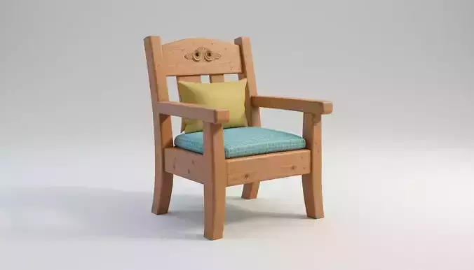 The chair features a simple yet cute cartoon-style design, with clean topology and PBR textures, making it easy to integrate into your own projects. Perfect for testing, practice, or as a base asset for larger scenes.