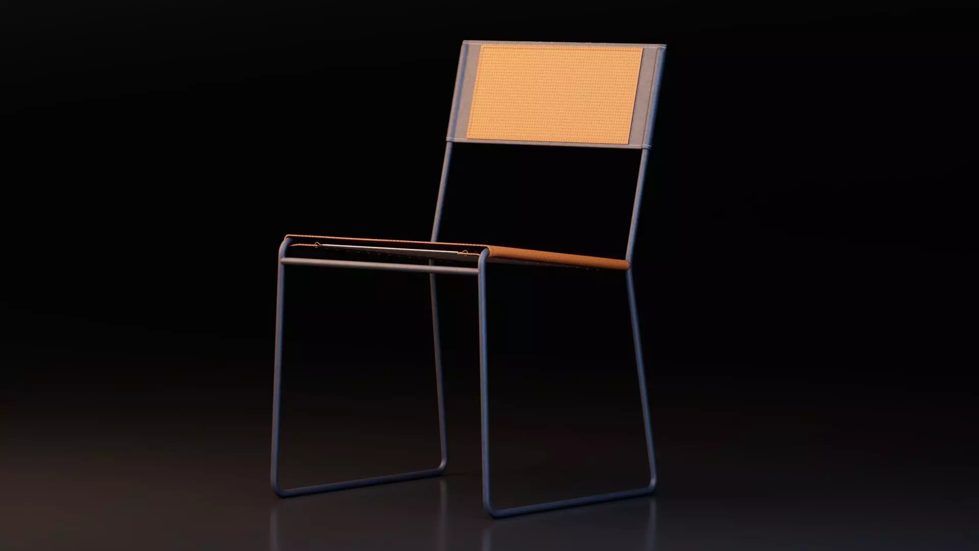 The chair combines clean geometric lines with subtle material detailing. The metal frame has a smooth industrial finish, while the seat and backrest feature textured upholstery, providing a strong balance between realism and visual clarity. Its lightweight and elegant design makes it ideal for close-up product shots as well as repeated placement in large interior scenes.