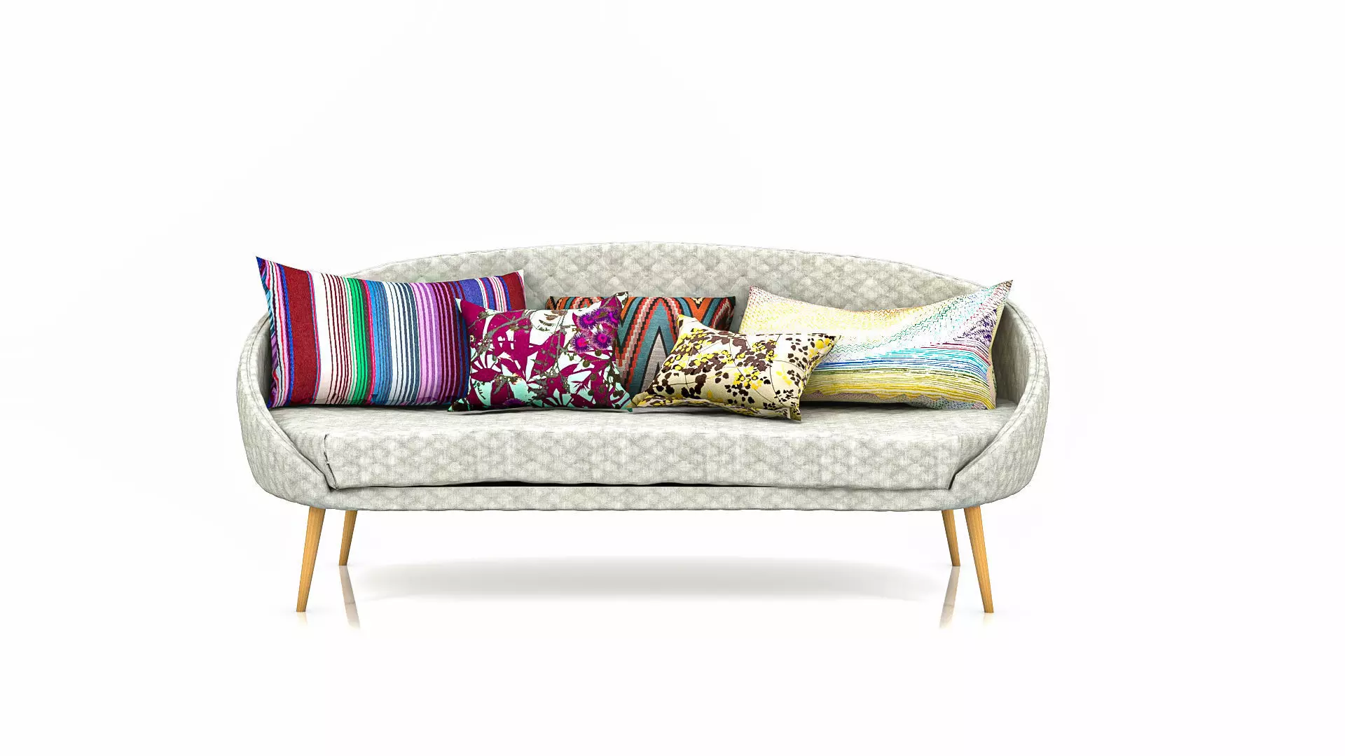 A simple sofa 3 places in grey quilted lfabric with a lot of colored pillows. The legs are in light wood. The native version is in 3ds Max 2020 plus 2019, 2018, 2017. Exchange format FBX and OBJ. There is also a Marmoset viewer preview.