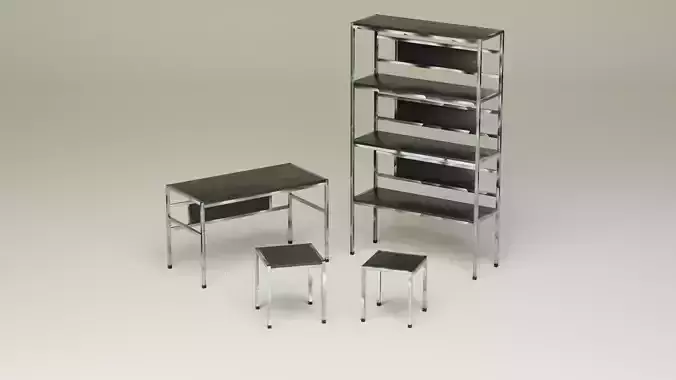 Student Study Set - Ebonized Wood Circular Brushed Steel - AMS01 Free 3D model
