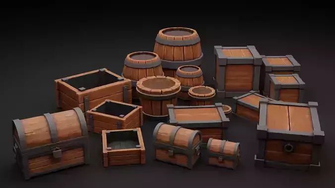 The pack includes a variety of chests, barrels, crates, boxes, and buckets in multiple sizes and variations, allowing developers to quickly populate scenes without repetition. Each asset is optimized for real-time use while maintaining strong visual quality and consistent art style.