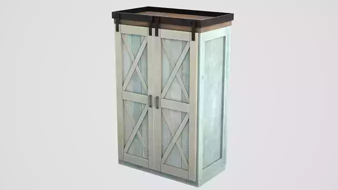 This charming armoire showcases a weathered gray finish with barn door-style panels. It is crafted from reclaimed wood and offers ample space for organizing clothes. This is a model of optimal quality, so you can use it both in game scenes and for your renders. The native blender file includes keyframes to help you with opening doors.