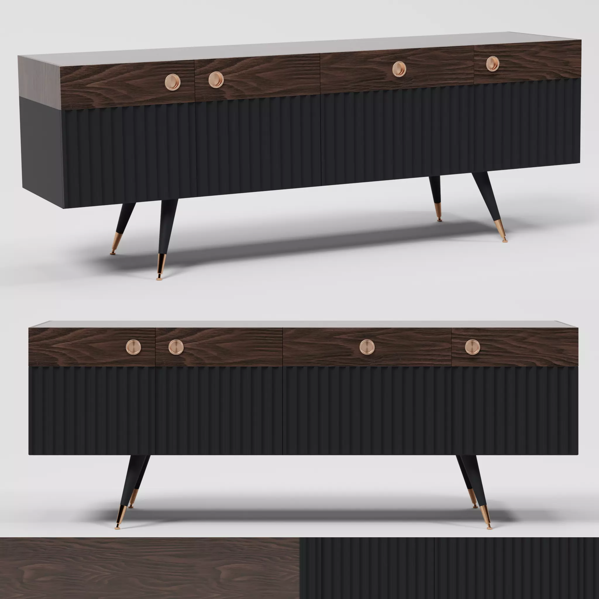 This is a 3d model of a sideboard known as (Neomi Sideboard).The model is originally created in Blend file(.blend) all the textures are included within the model.All the interiors of the sideboard have been correctly modeled.All textures in 4k resolution, 8k is not available. Contact me if you want textures in 8k.The model is completely free and if you end up using the model in your scenes then don't forgot to like the model.