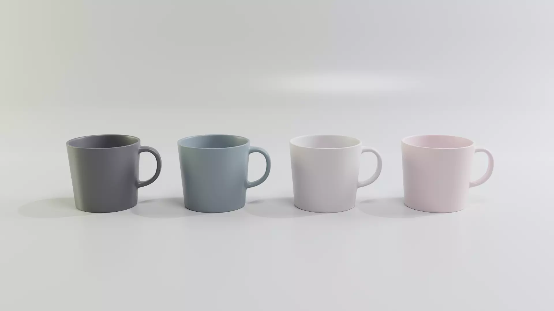 The model has material settings that define how surfaces look (color, shine, transparency, etc.).