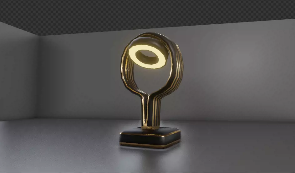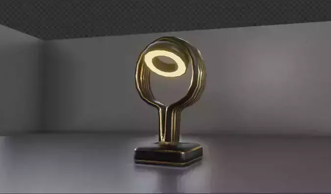 This modern and luxuriously designed table lamp is designed to create a minimalist and elegant atmosphere. With its gold-plated details and soft light effect on the inner ring, it can be used both as a decorative object and as a functional lighting element. Ideal for interior designers, gaming environments and high-end visualization projects.