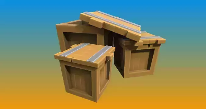 Free openable hand-painted wooden Box 3D game-ready Asset
