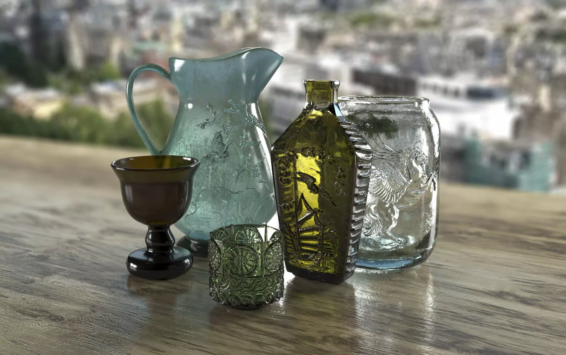 The model has material settings that define how surfaces look (color, shine, transparency, etc.).