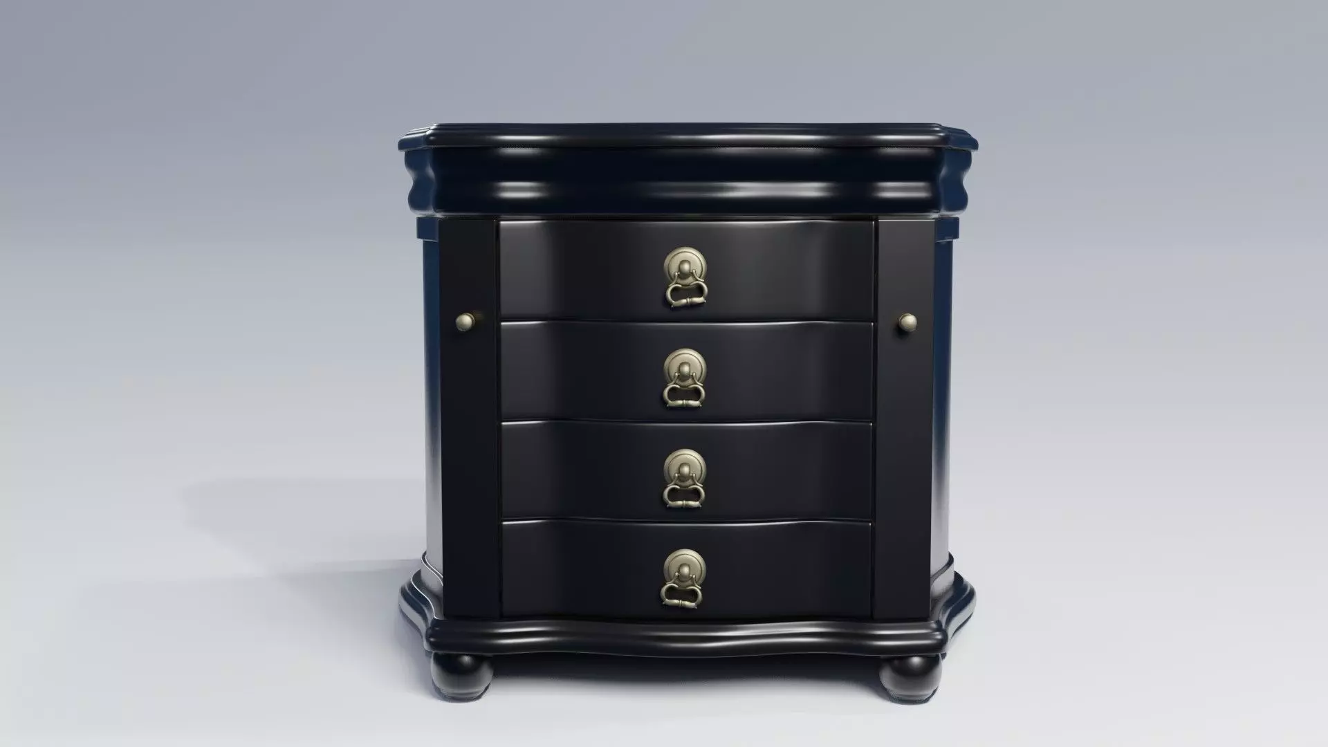 Features:• Product Type: Jewelry box• Shape: Novelty• Style: Traditional• Finish: Black• Distressed: No• Life Stage: Adult• Interior Material: Wood• Exterior Material: Wood• Interior Storage Included: Yeso Number of Cufflink Compartments: 4o Number of Necklace Hooks: o Number of Ring Slots: o Number of Zipper Pockets: o Number of Removable Trays: • Drawers Included: Yeso Number of Drawers: 4o Felt Lined Drawers: Yeso Drawer Dividers: o Adjustable Drawer Dividers: 8o Drawer Interior Finish: Yes• Mirror Included: Yes• Doors Included: Yeso Number of Doors: 3• Country of Origin: China• Interior Storage Type: Ring roll;Necklace hook