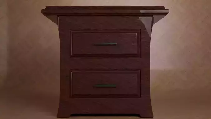 This 3D model features a beautifully crafted dark wood nightstand with a clean and elegant design, perfect for classic or modern interiors. The piece includes two drawers with detailed edges and sleek metal handles. A glossy finish enhances the realistic wood texture, making it an excellent choice for high-quality renders and interior scenes.