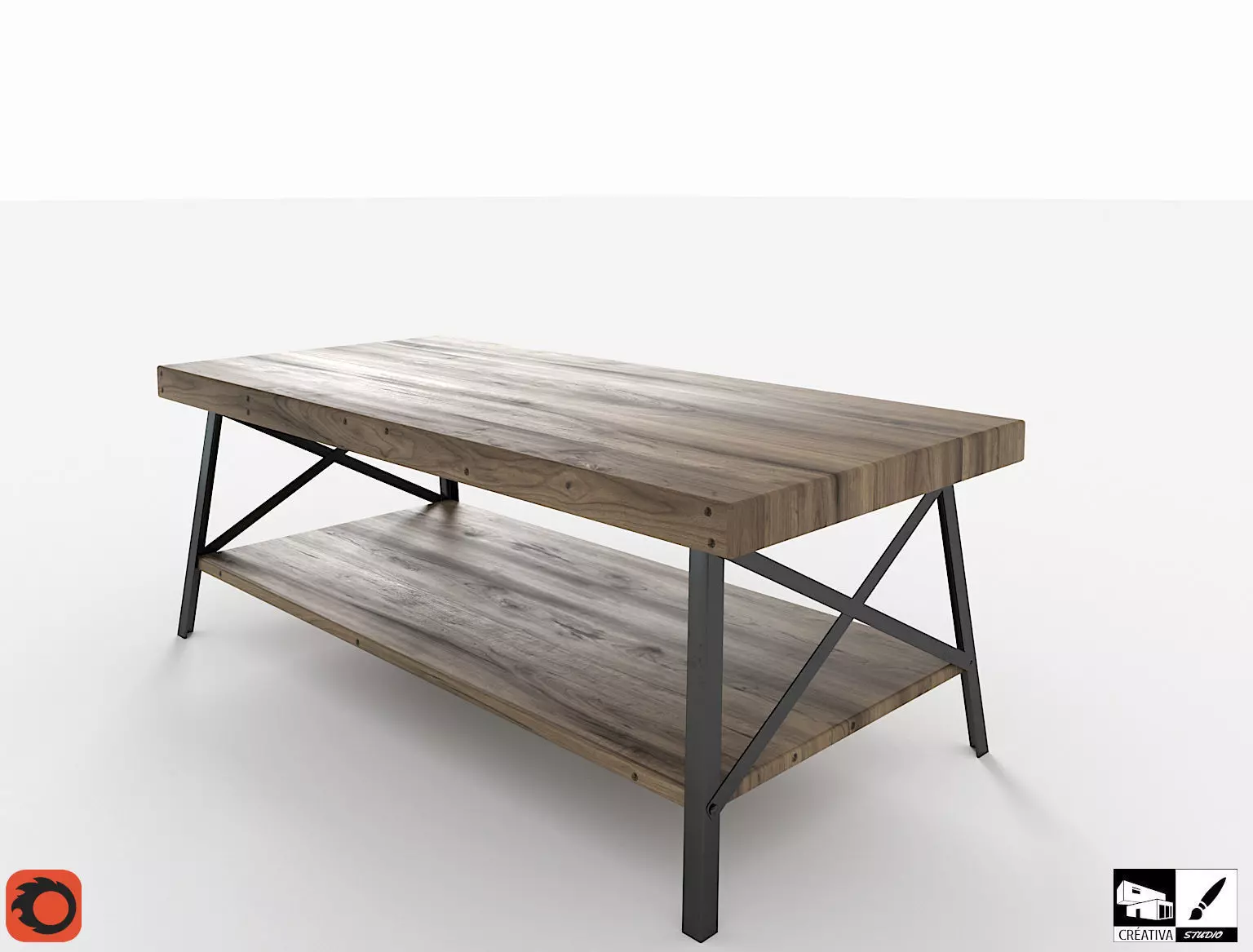 Cocktail table with an industrial touch, perfect as a center piece of a industrial living room! Comes with 4k/2k/1k, non overlapping Uvs and a material library so you can drag and drop this model in your scene.