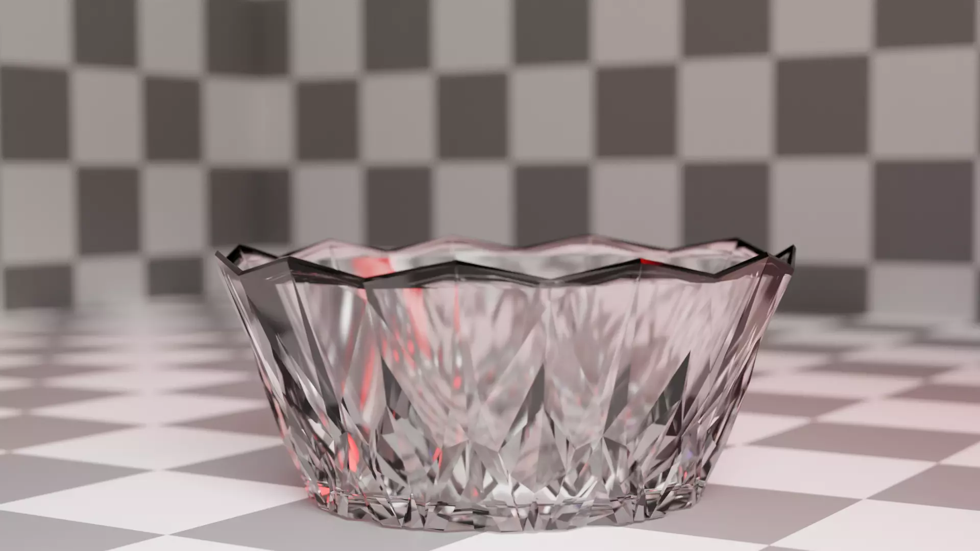 Cut glass crystal bowl modeled on a real counterpart of unknown origin. Low poly (under 1000). It would look great as decoration for architectural visualization or in a game or animation. It is not designed to be 3D printed. No materials included because most 3D software has resources to make a basic PBR glass shader.